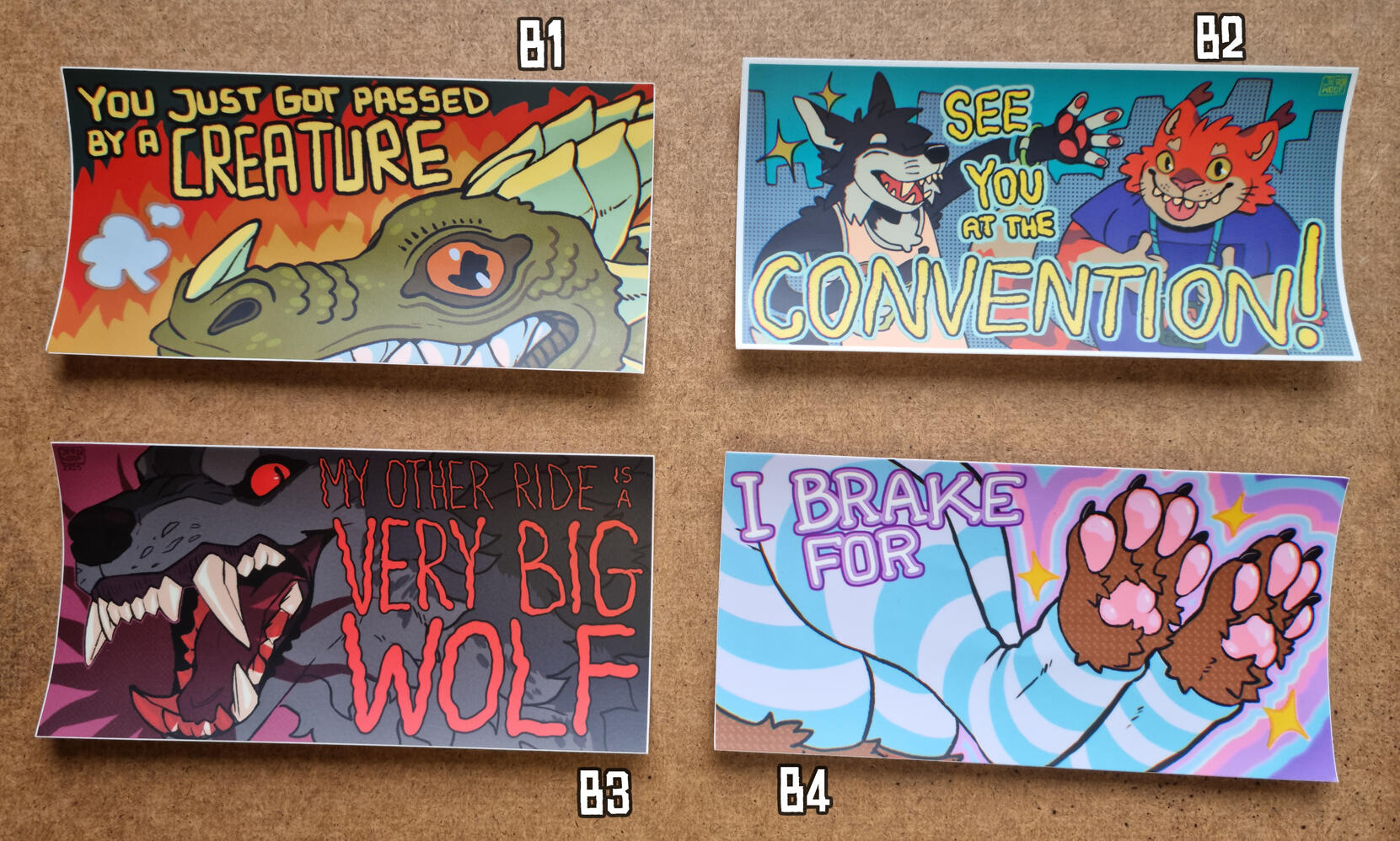 On the site there are mostly pictures of physical products that are convention "left-overs" in a very limited quantity (1-2 prints per design, 5 stickers per design etc)